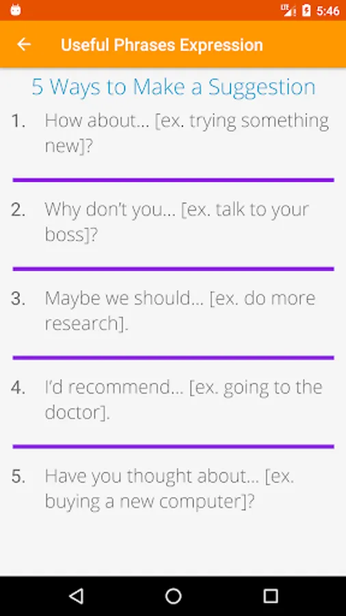 Start learning English Phrases in our app and finding many ways and phrase for: