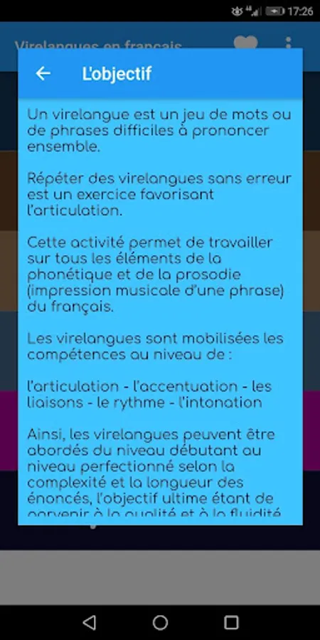 This activity works on all elements of phonetics and prosody (musical impression of a sentence) French.