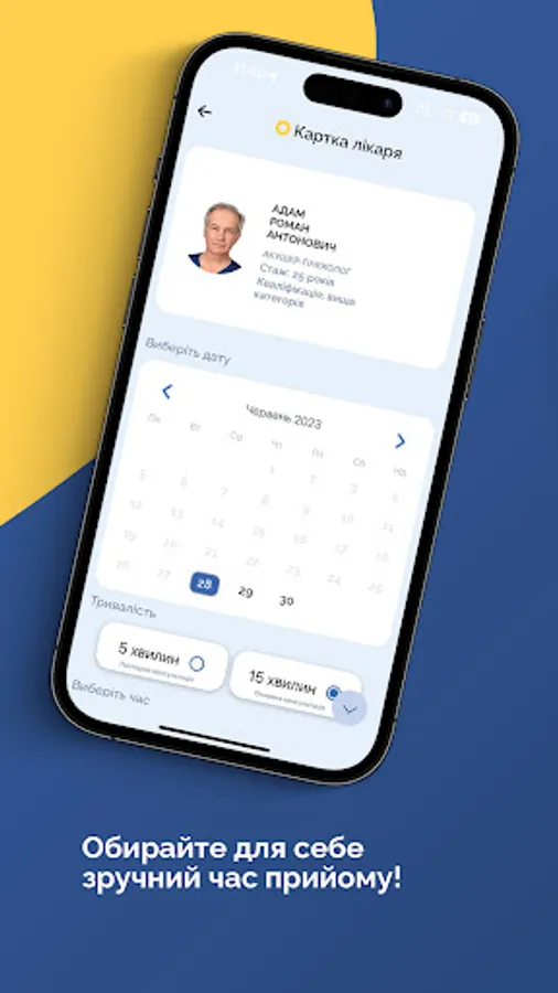 - the patient chooses the duration of the consultation (main - 15 minutes, repeated - 5 minutes);