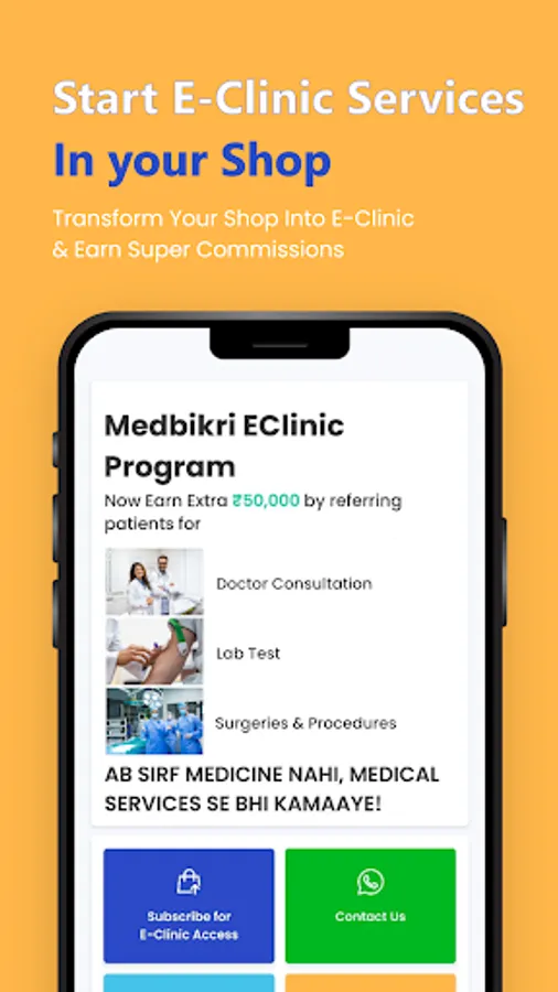 E-clinic feature: You can now transform your Medical store into a clinic. Earn extra upto 50,000 by providing Doctor Consultation, Lab Tests and Surgeries & Procedures for your customers.