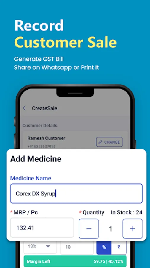 Our medical store billing app has advanced features like pharmacy inventory management, medical billing, and pharmacy GST software to help you manage your store more efficiently. Whether a small medical shop or a large pharmacy chain, our free pharmacy billing app can help you reduce your operational costs and maximise your profits.