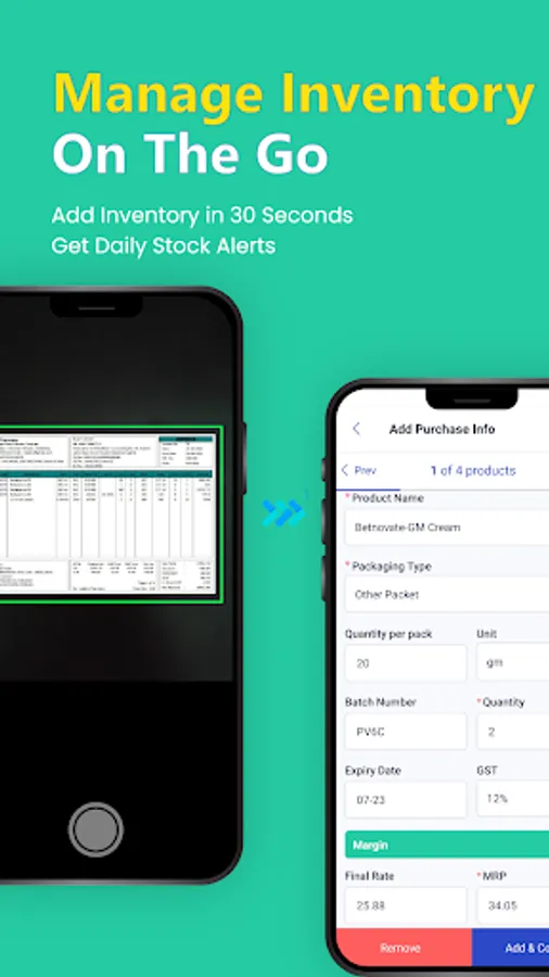 ✅ Manage Inventory - Just scan a picture of your purchase bill/upload the bill through the gallery to manage your Inventory on Medbikri in under 60 seconds.
