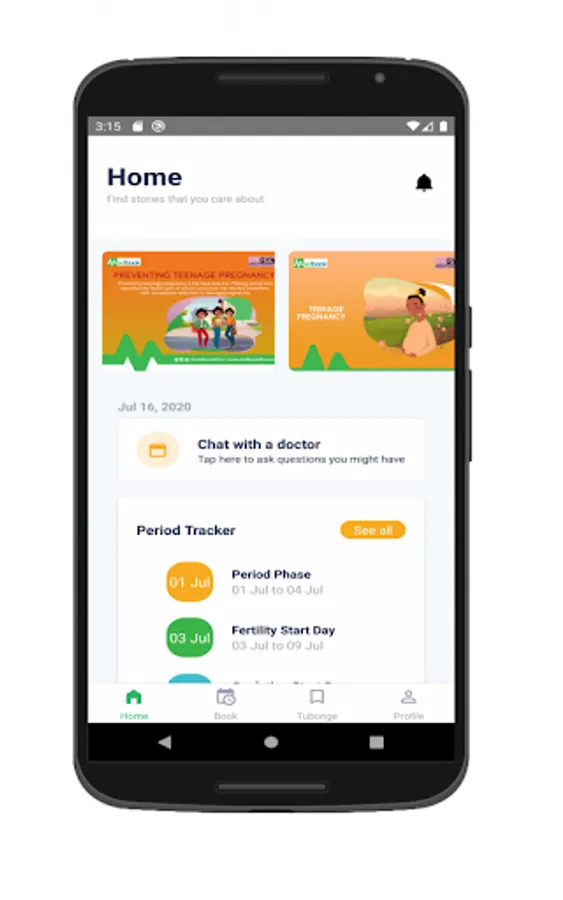 The application also helps you track your nearest health specialist and book a chat appointment with them.It also gives you access to health information around your reproductive health.