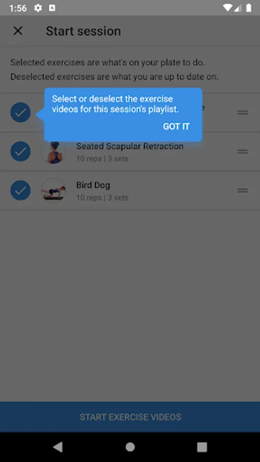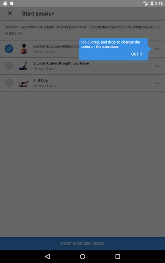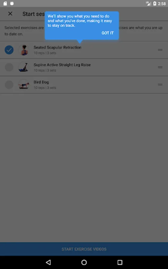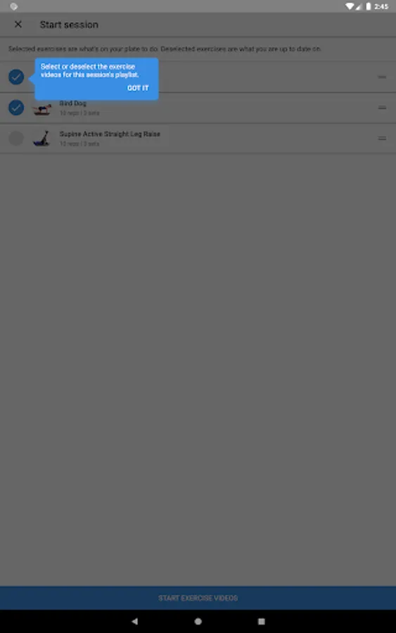 2. Tap ‘GO’ to follow along with the exercise videos as they play on-screen