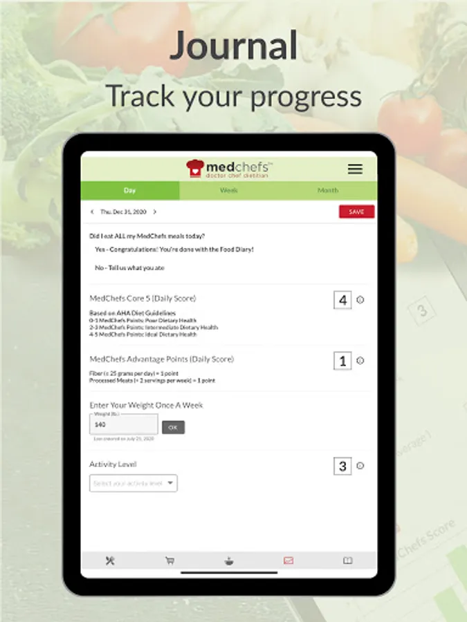 2. Build your MedChefs points: eat more of the core foods, achieve a daily score of 4-5 and you’re on the way to health