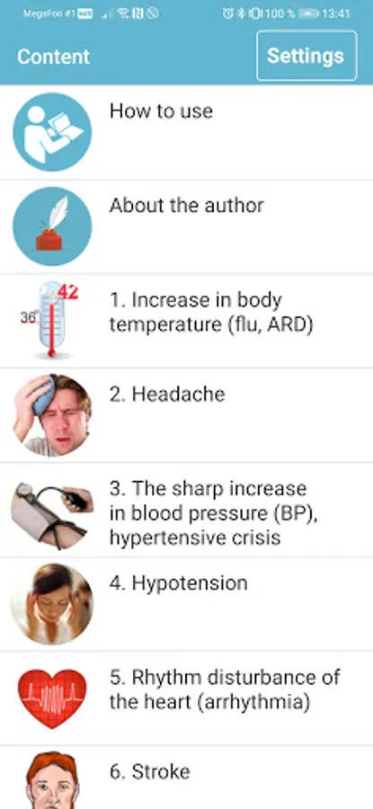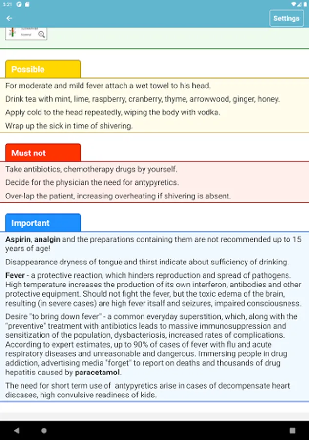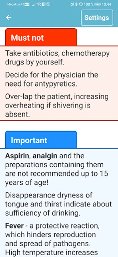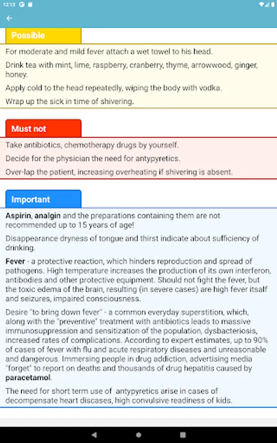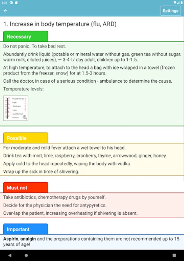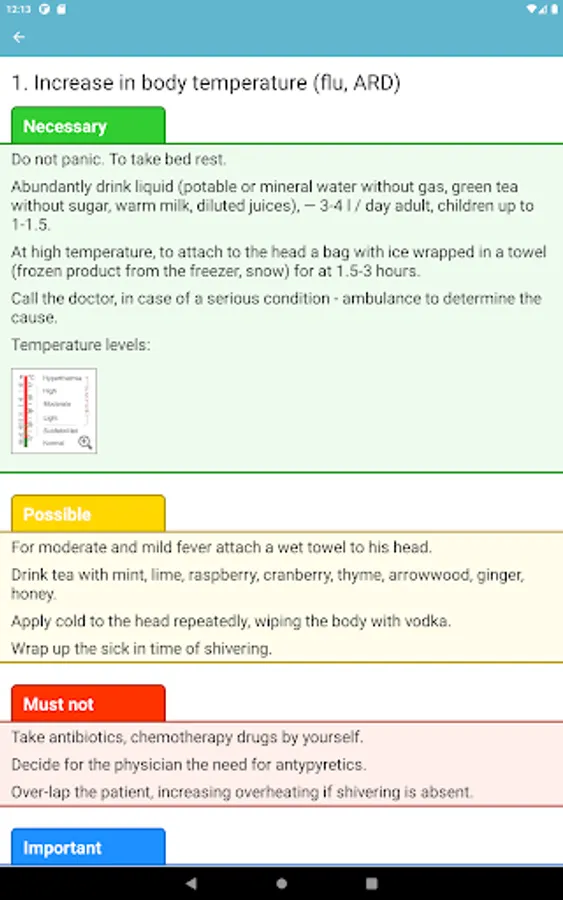 Covered the situation with fainting and nose bleeding, fever and food poisoning, insect bites and animals, thermal burns and stinging, a sharp increase in blood pressure, accidents.