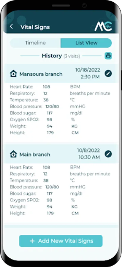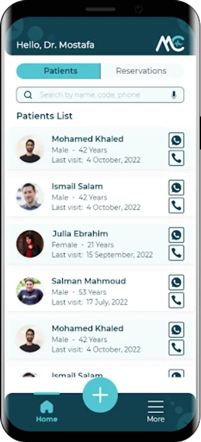 2- Patients list to find any Patient easily through searching by name, mobile and also filtering by sex and city