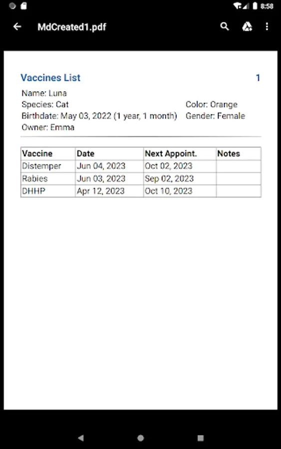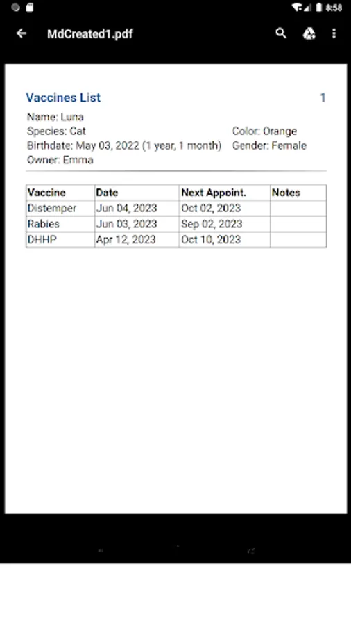 With MyPet you can export pets medical records to excel file, print your pet reports, or send them to your vet.