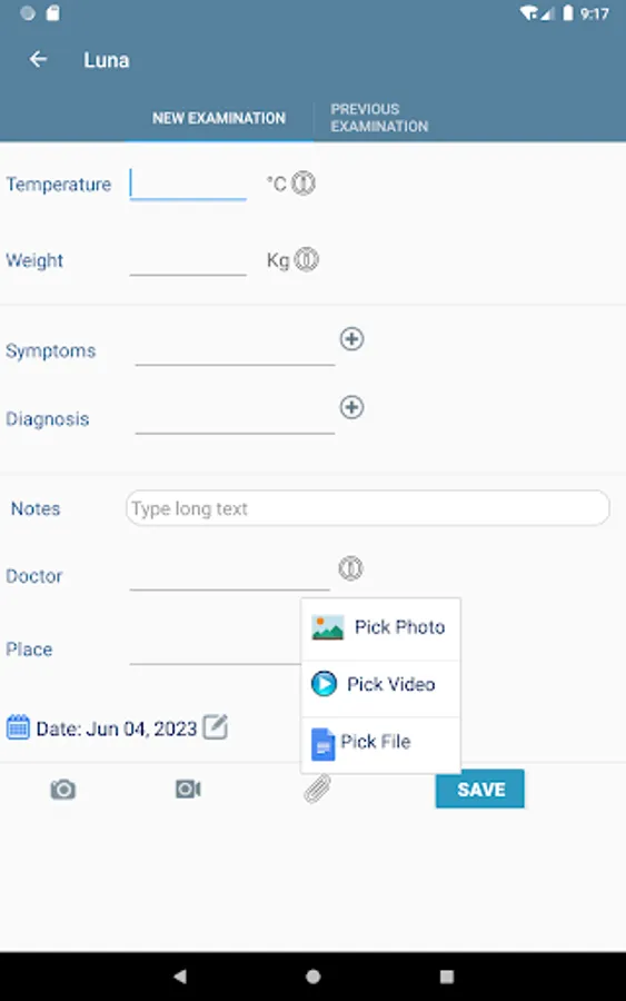 * Prescription where you may either record the drugs or you may attach the vet prescription document.