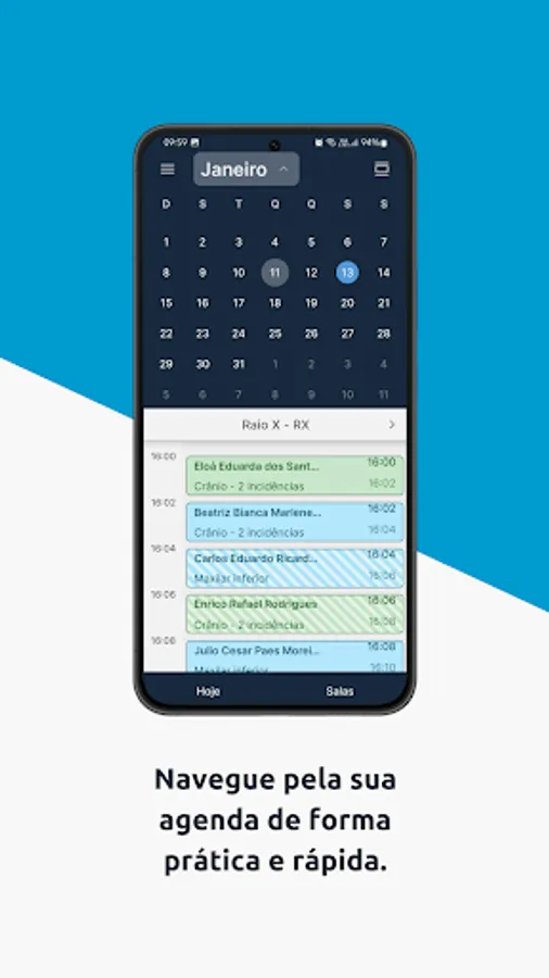 View and browse the schedules of all rooms registered on the web platform. With just one movement, slide the name of the room to the side to switch between them;