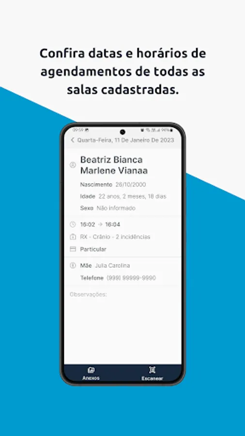 We even added an exclusive feature of the application! In the app, you can add attachments to appointments using your cell phone's camera. Just go to the appointment information and select the "Scan" option in the lower right corner of the screen.