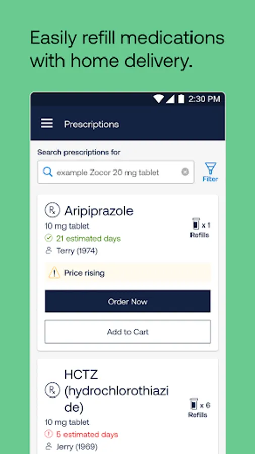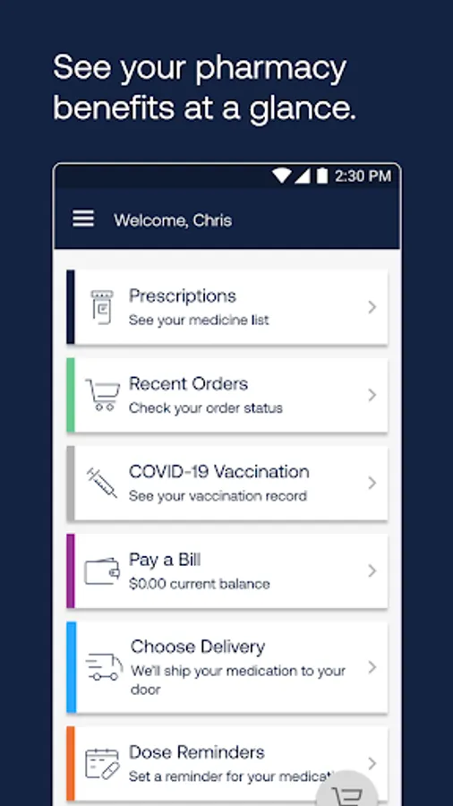Find a preferred pharmacy, refill your prescription and check your order status—anytime, anywhere.