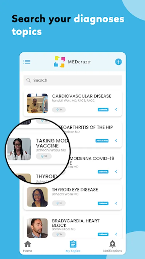 MEDcraze is an advocacy platform that allows you to search for the latest information surrounding healthcare and the medical industry at large, with topics and content generated by both clinicians and everyday people.