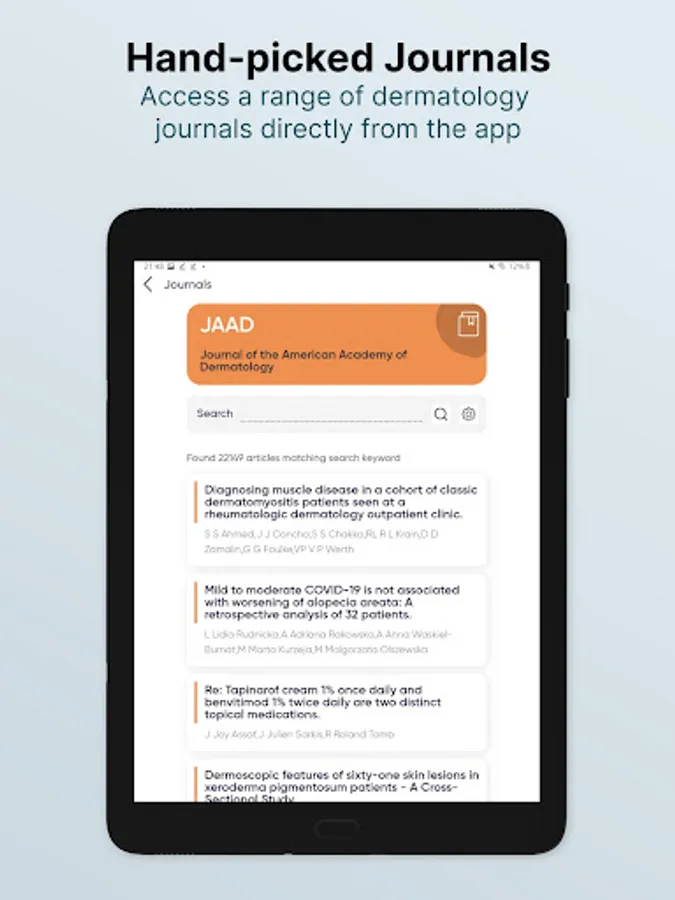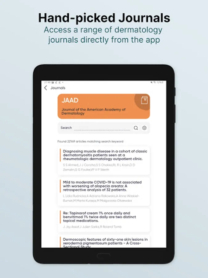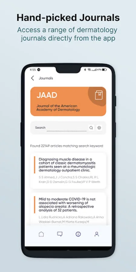 Journals - This section displays scientific articles from journals that doctors can browse. Consider it to be a virtual library of dermatology-related articles