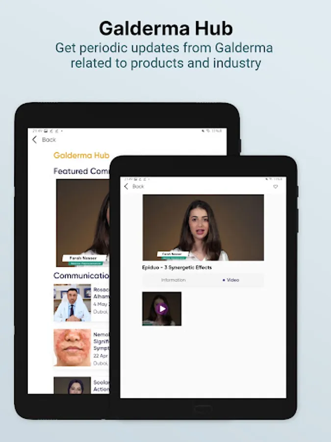 Galderma Hub - this section consists of in-app communications and general information made by Galderma to the doctors