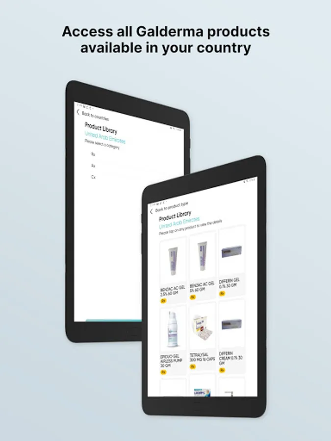 Product library - this section consists of information related to Galderma products