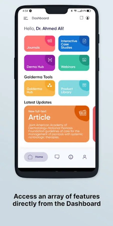 The Galderma Derma Optimum Care (DOC) mobile application has been developed for dermatologists in the Middle East region. It is a comprehensive knowledge repository and tools that will provide dermatologists ready access to quality scientific content, dermatology-related cases, and journal articles to help them in their clinical practice.