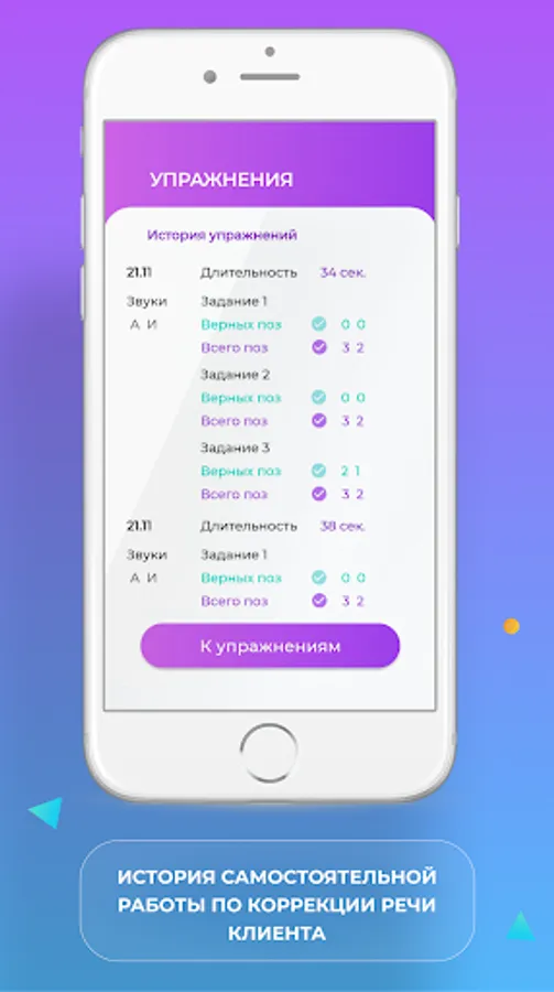 The application keeps statistics on the correctness of the performance of articulation poses when setting and automating sounds and monitoring the systematic performance of exercises to analyze the effectiveness of speech development and automatically evaluates the correctness of articulation poses performed by the user.