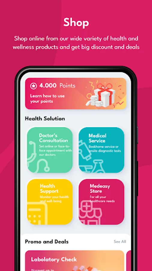 Earn reward points by simply using Medeasy - daily log in, buying points, booking services, and sharing medical news and events