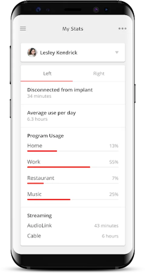 AudioKey also lets you check the usage statistics of the audio processors and quickly access helpful support material from MED-EL.