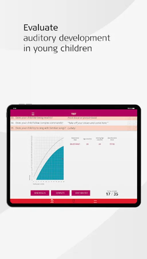 Questions are answered by checking YES or NO. The results of the LEAQ are automatically marked in the normative data graph that shows if the child’s auditory development is according to their age.