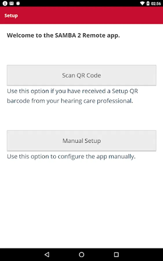The SAMBA 2 Remote is an optional mobile app which can assist with switching between simple set-tings of the SAMBA 2 audio processor, as predefined by your audiologist or healthcare professional.