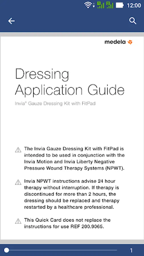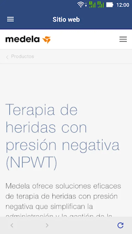 The Medela NPWT App helps healthcare professionals and patients to better manage NPWT with its short and simple instruction videos and quick cards to support you in becoming a confident and knowledgeable NPWT user. Medela offers a complete portfolio of easy-to-use, reliable and effective Negative Pressure Wound Therapy solutions delivered by experts in medical vacuum technology. The Medela NPWT App offers quick access to information for set-up and handling of our systems wherever you are.
