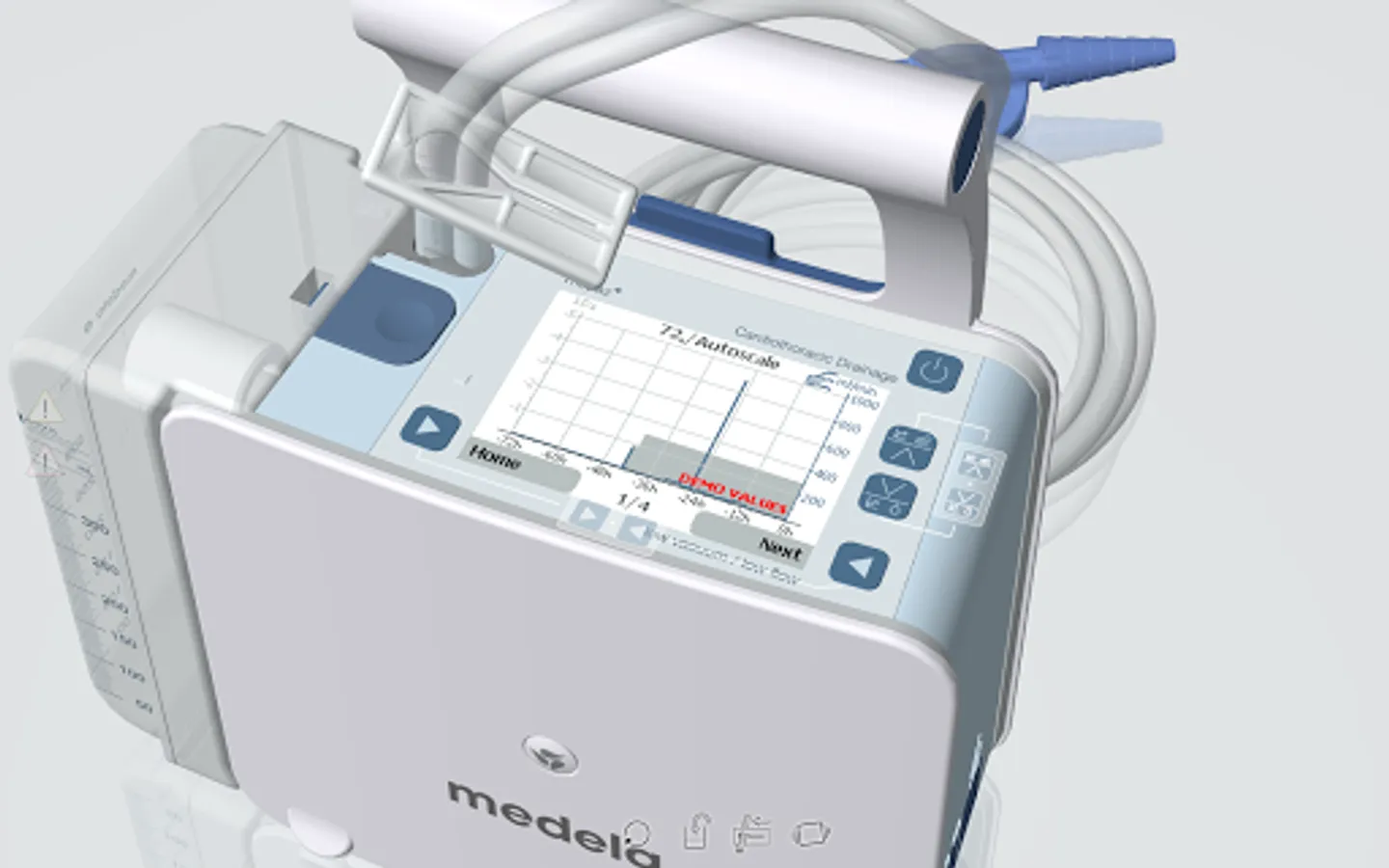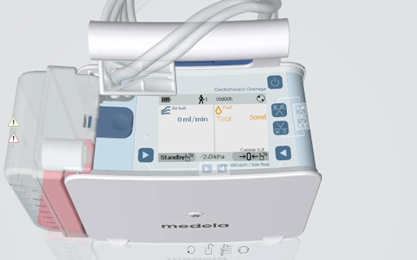 Medela's Thopaz+ takes chest drainage therapy to a new level of care. Unlike analogue systems, it reliably regulates the applied pressure at the patient's chest and digitally (and quietly) monitors critical therapy indicators. Clinical data has demonstrated that Medela's chest drainage therapy improves outcomes and streamlines the delivery of care.