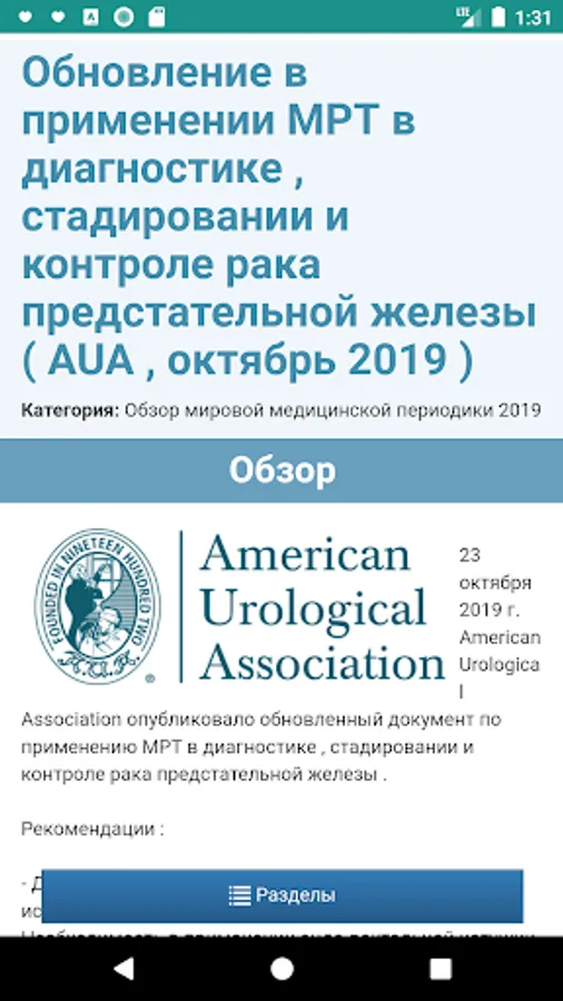 - Section of useful materials for doctors and patients (reviews of world medical periodicals, articles, memos).