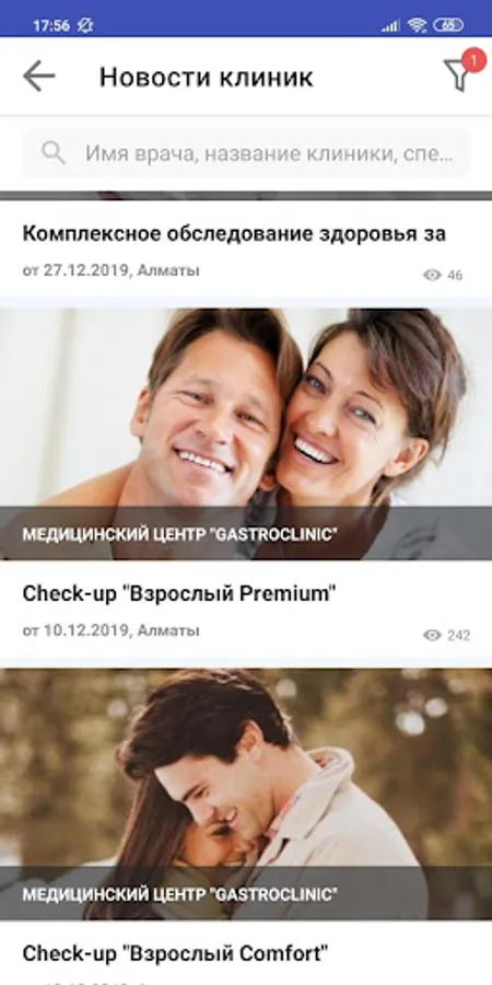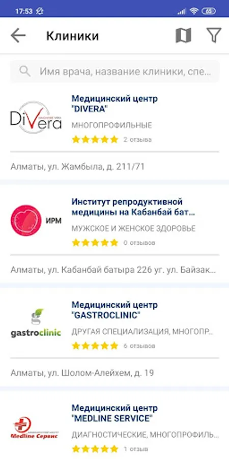 - Search for a doctor, clinic and medical service in the selected region (selection from the available regions). The database of available clinics and doctors in the application is constantly updated
