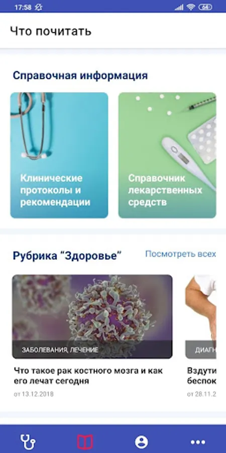In addition, the application includes a reference section for doctors, which contains standards for the diagnosis and treatment of diseases in Russia, Kazakhstan and Belarus, as well as review articles based on Russian-language clinical guidelines and foreign guidelines.