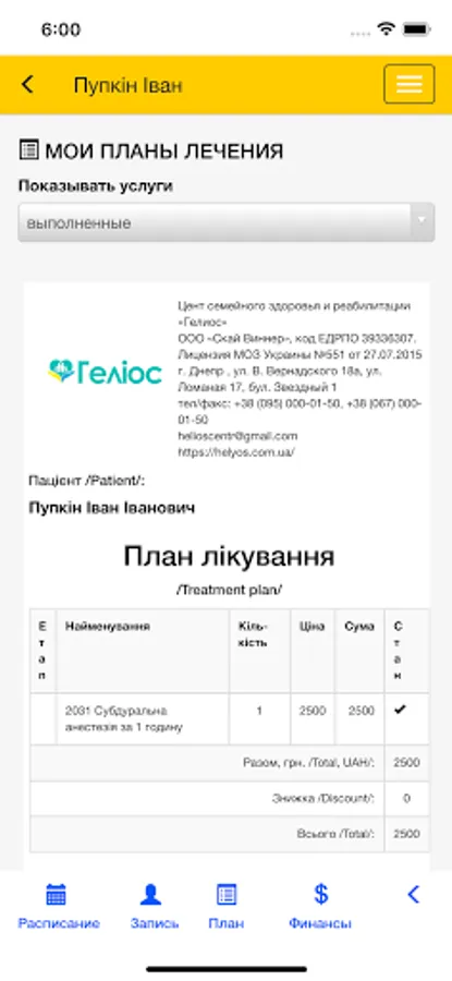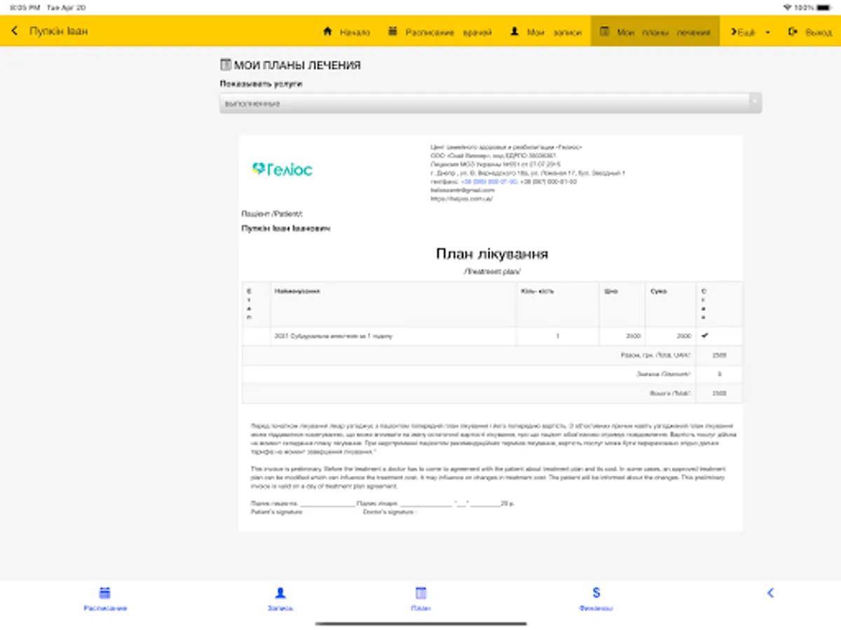 Only patients registered with the GELIOS Medical Center can use the program. To register and receive a password to enter, you must contact the clinic's registry.
