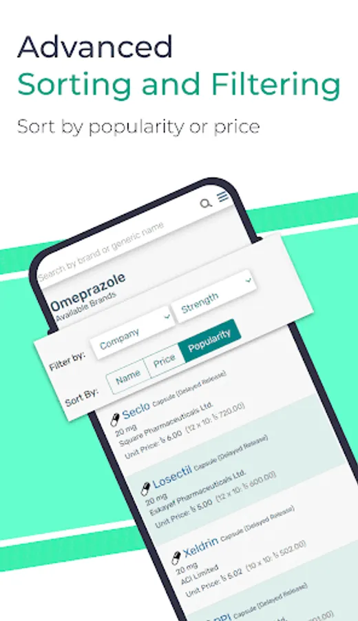 Extensive filters: Sort medicines by popularity, price, company, or strength for a more personalized experience.