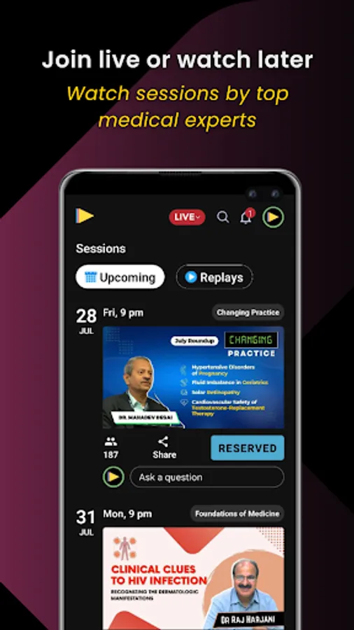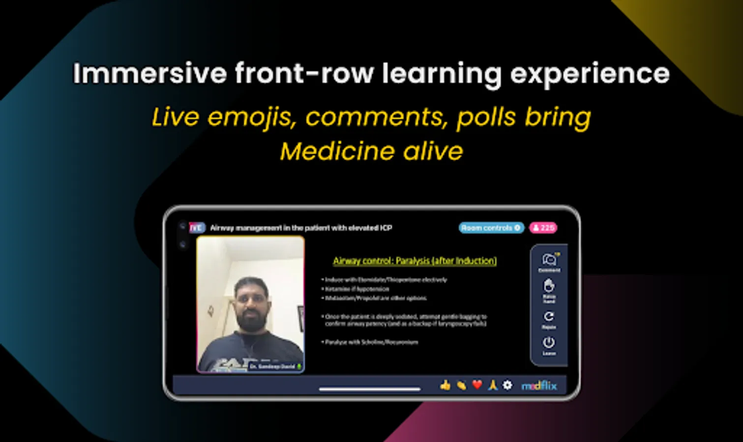 💬 Built for interactivity, you will never feel alone in a Medflix discussion - express yourself with emojis, share on-screen comments, take polls and get on-stage up close with the who’s who of modern Medicine!