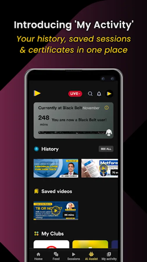🎯 Set monthly learning goals and track your progress; earn 🥋 belts every month and compare your learning activity with doctors across the world