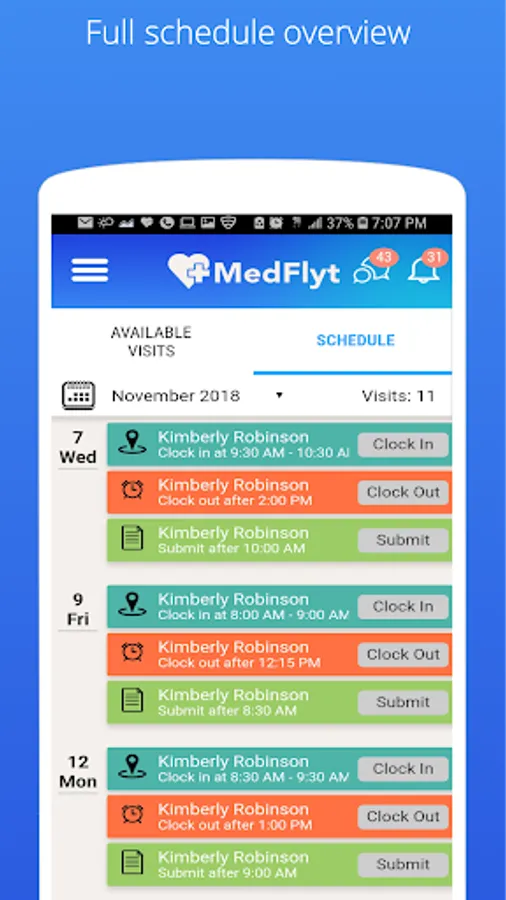 Medflyt app connects caregivers with home care providers and manages everything you need to succeed as a caregiver.