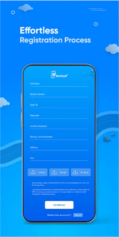 * To be part of our healthcare venture, you are required to upload documents such as Driver’s license, RC Book and your Aadhaar Card ID as proof.