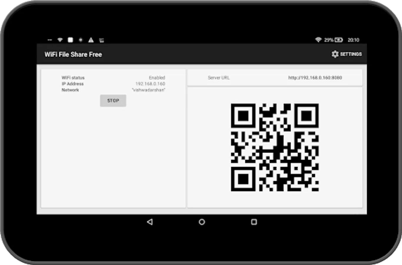 A simple and easy use app to manage files on your android device over wifi. Avoid using USB cables to transfer files, movies, photos and songs from your device to laptops/PCs/Macs and other android devices.