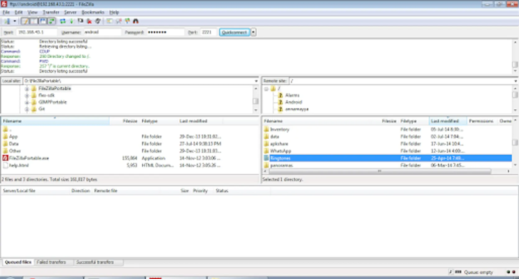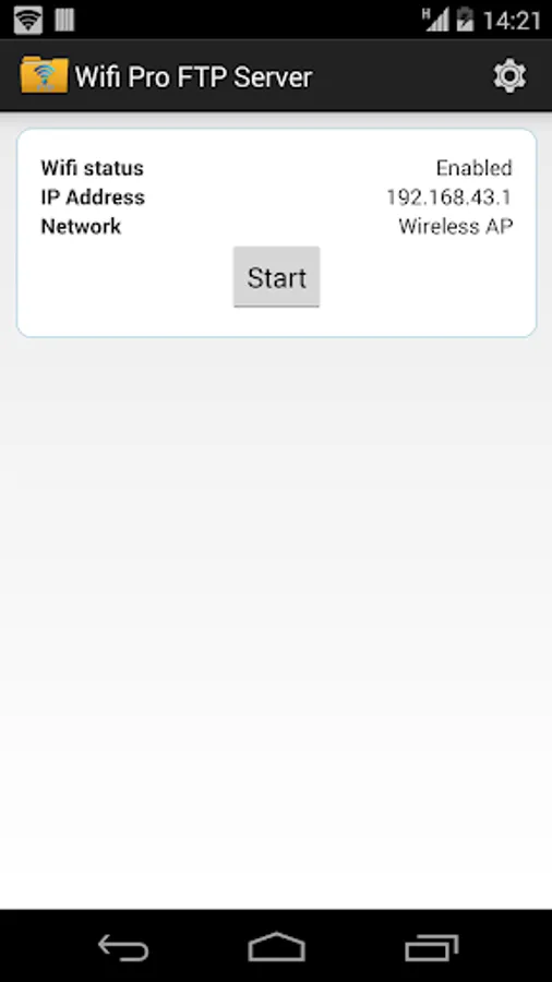 Port number should be greater than 1024 as binding to ports like 21 will not be possible on non-rooted phones. The default port number is configured to 2221 and can be changed from settings screen. For security reasons, anonymous access is not enabled by default. It can be enabled from settings screen.