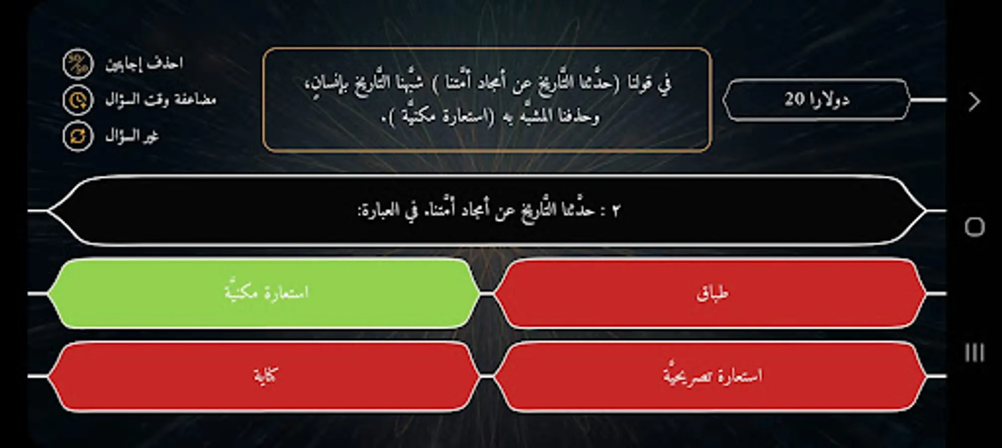 Each competition consists of 18 questions + 3 aids in each competition (changing the question - deleting two answers - doubling the answer time)