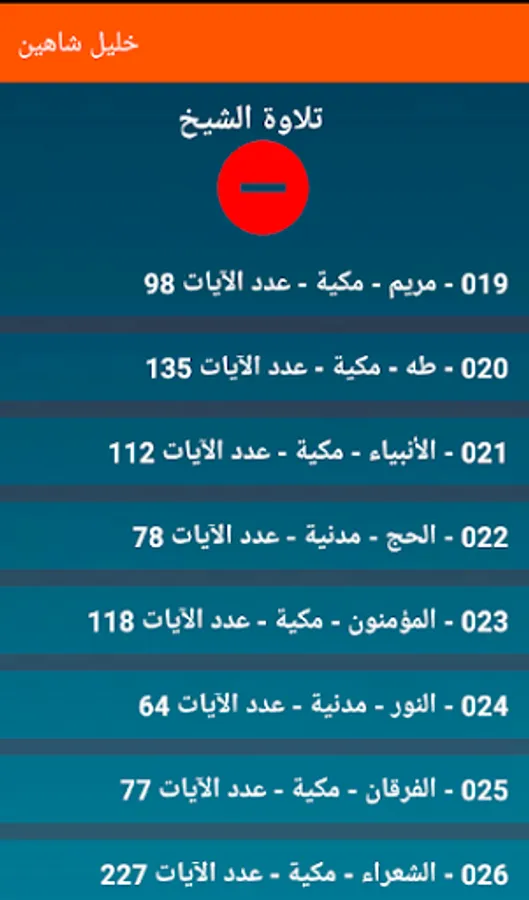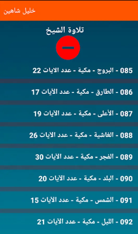 برنامج تحميل القرآن الكريم بصوت أحمد خليل شاهين واستخدامه في السماع لسور القرآن الكريم.