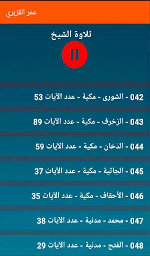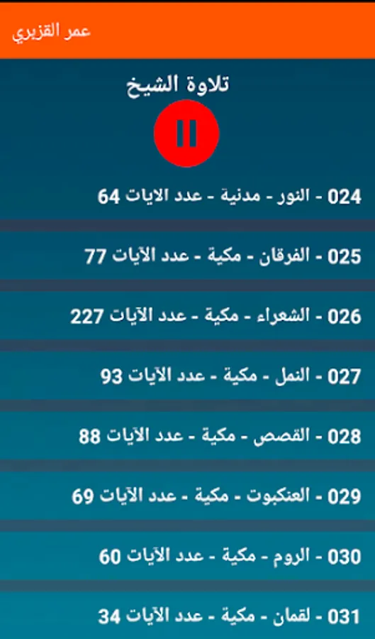برنامج تحميل القرآن الكريم بصوت عمر القزبري واستخدامه في السماع لسور القرآن الكريم.