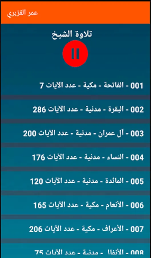 تطبيق القرآن الكريم بصوت الشيخ عمر القزبري لك سماع سور القرآن الكريم كافة من خلال الجوال مجانا.