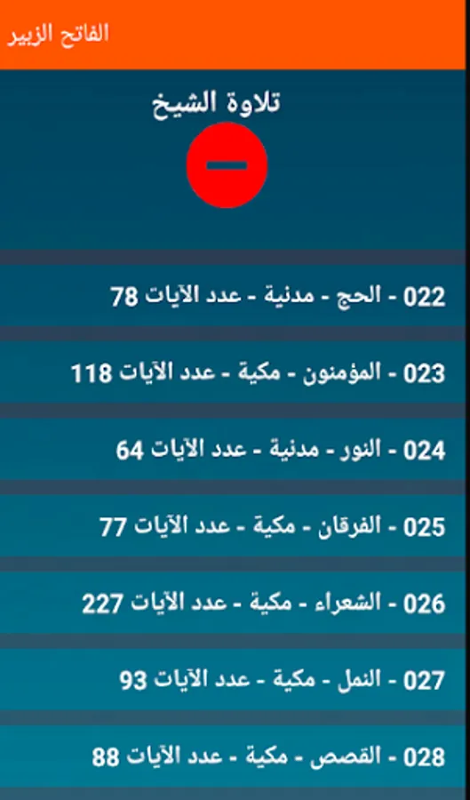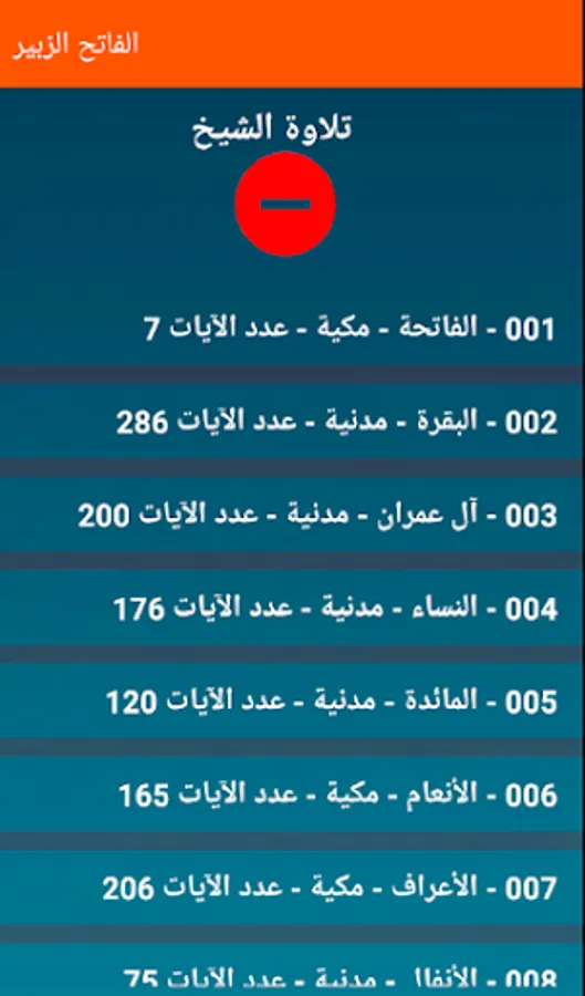 برنامج تحميل القرآن الكريم بصوت الفاتح محمد الزبير واستخدامه في السماع لسور القرآن الكريم.