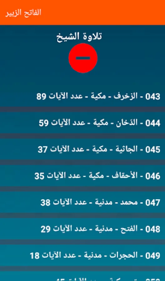 واجهة تطبيق القرآن الكريم بصوت الفاتح محمد الزبير بسيطة جدا وسهل الاستخدام.