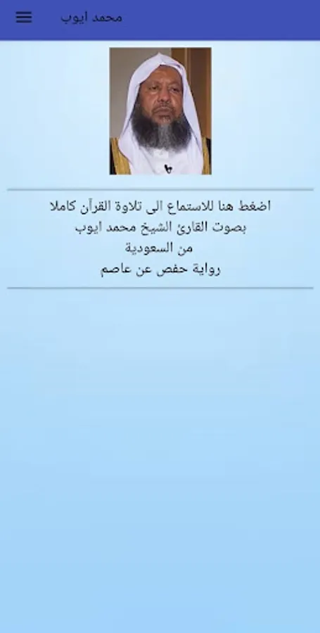 تطبيق القرآن الكريم بصوت الشيخ محمد ايوب