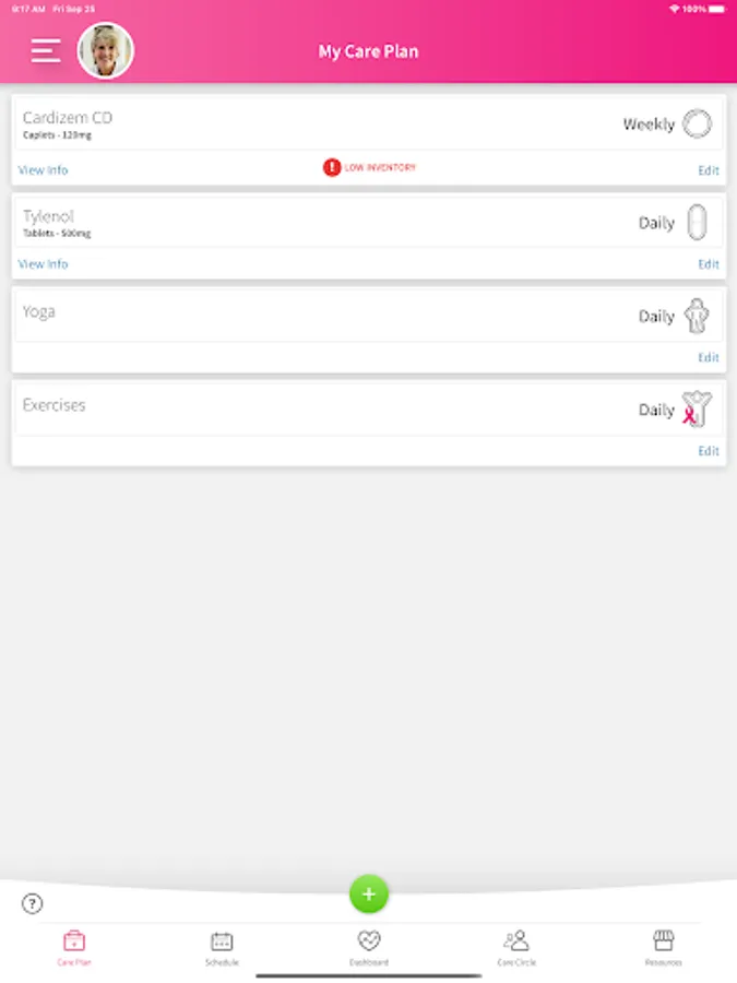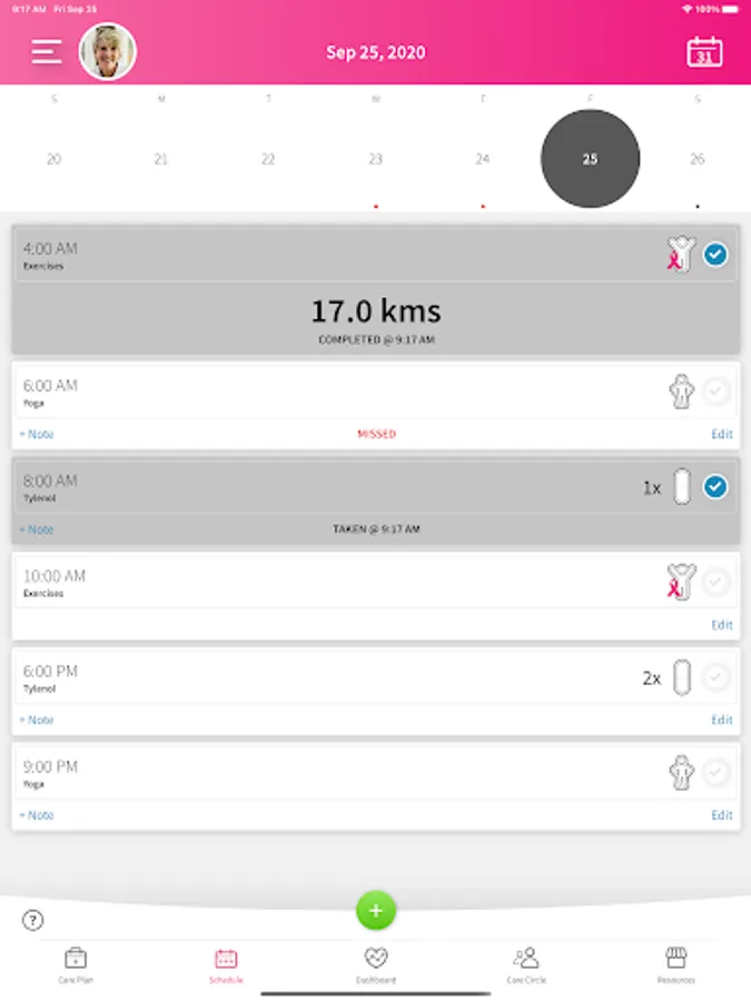 Take a med, complete an exercise session or activity directly from your schedule.