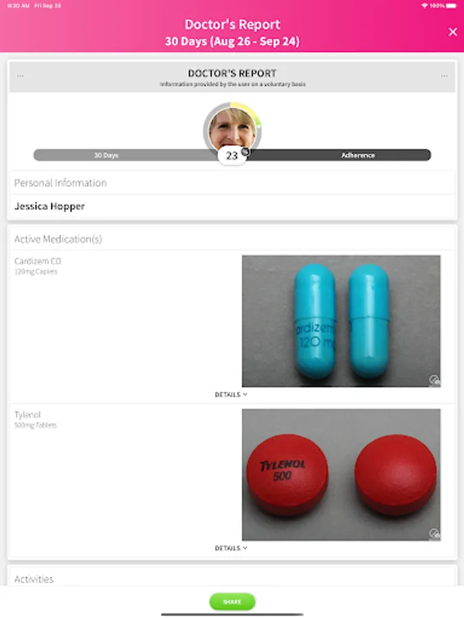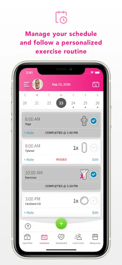 Add Notes associated to specific items in your schedule (like an exercise, medication or activity) to keep track of any side effects you might experience.