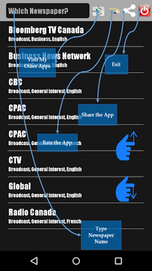 Among others, below, the list of the Canada Newspapers offered by this app: