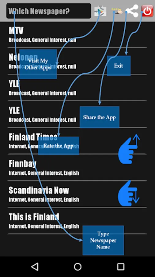 Among others, below, the list of the Finnish Newspapers offered by this app: